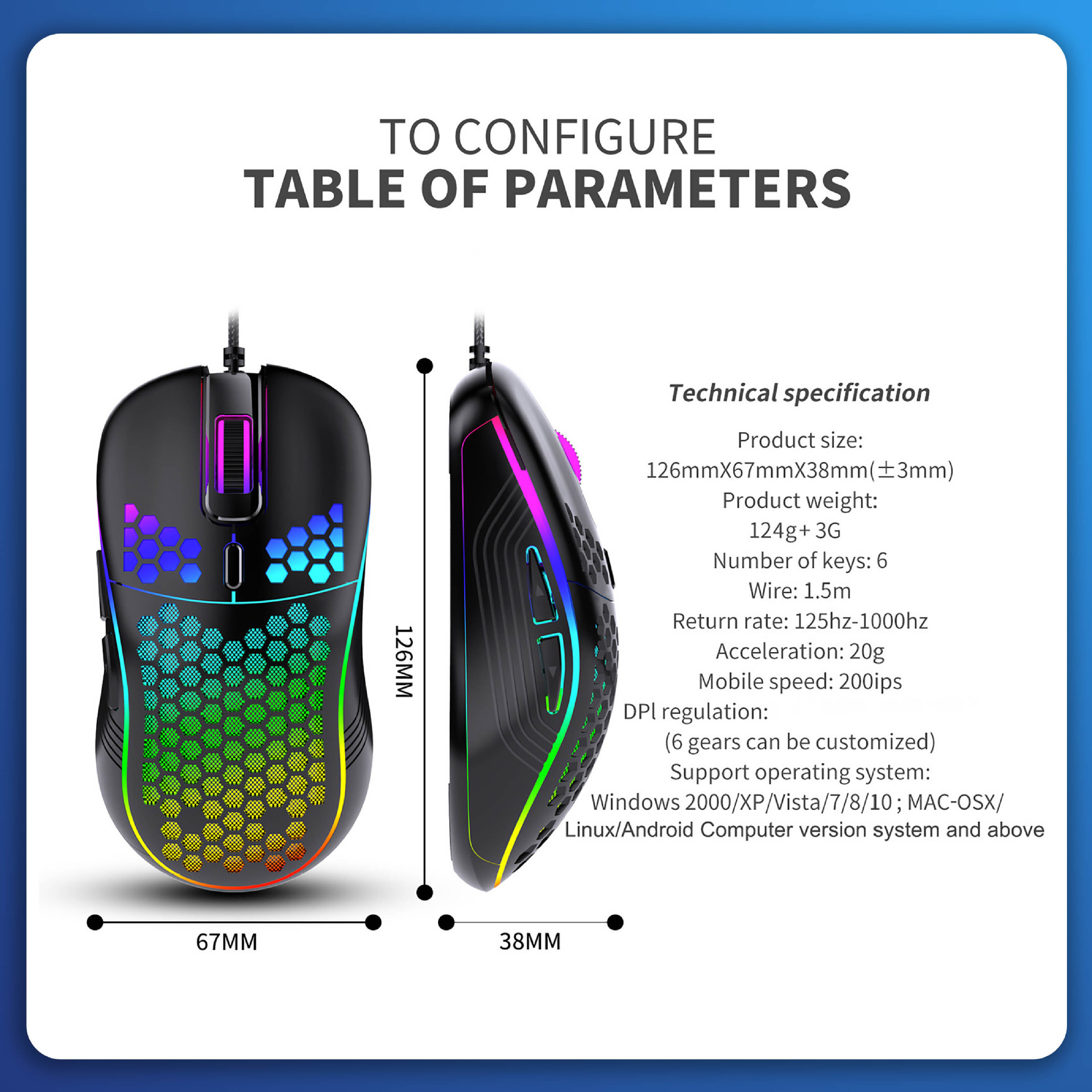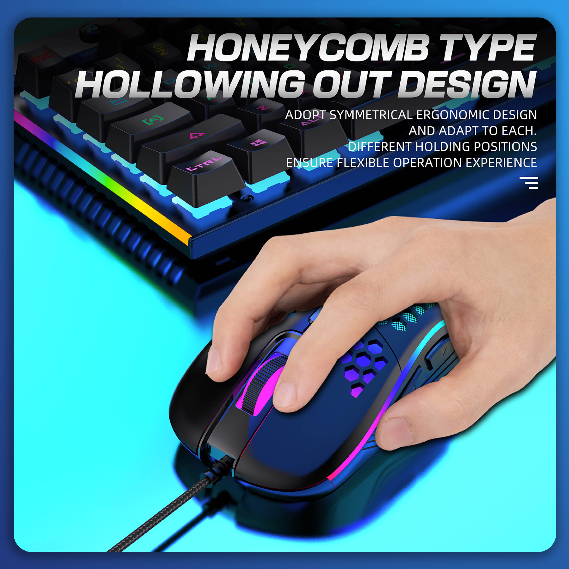 Cross-Border Rgb Light Usb Wired Perforated Rgb Light Usb Charging Mouse Hole Lightweight Type-C Charging